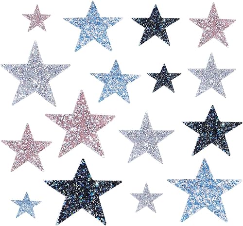 FDGGT 16 Pièces Patchs en Tissu Étoile À Cinq Branches, Patchs en Tissu À Paillettes, Patchs en Tissu De Décoration De Vêtements, Patchs en Tissu Strass, Patchs De Réparation De Vêtements