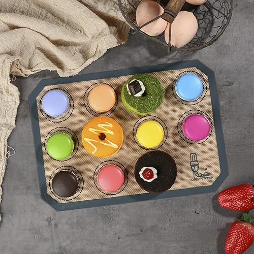 2 Pièces Tapis de Cuisson en Silicone, Tapis de Four en Silicone pour Le Biscuit et Macaron, sans BPA Anti-Adhérent Feuille de Cuisson Patisserie (30 x 21 cm, Gris)