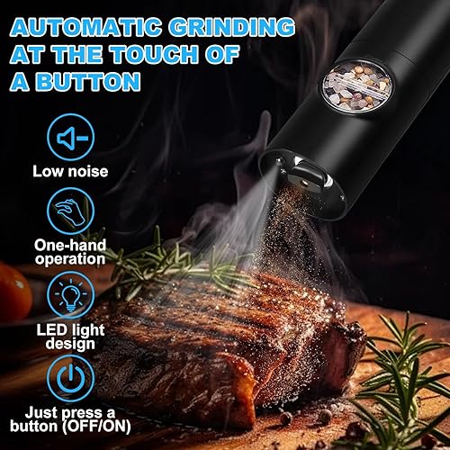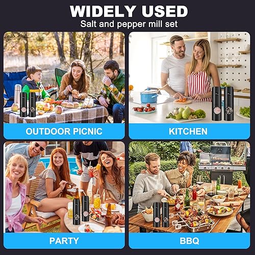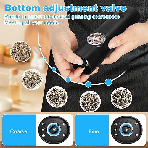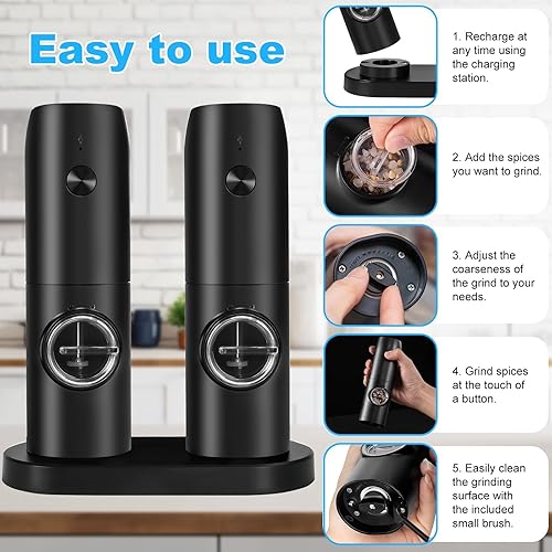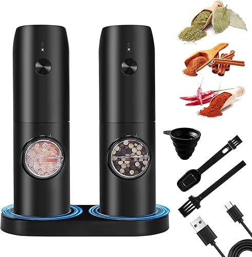 UCAMP Moulin à Sel et Poivre Électrique,Ensemble de Moulin à Poivre Électrique avec Base Rechargeable,Grossièreté Réglable,Moulins a Epices Electrique avec Pinceaux et Cuillères,Lampe LED