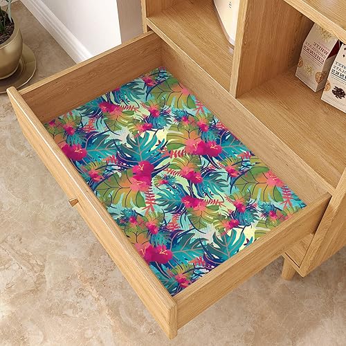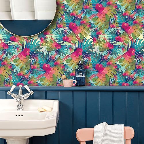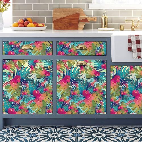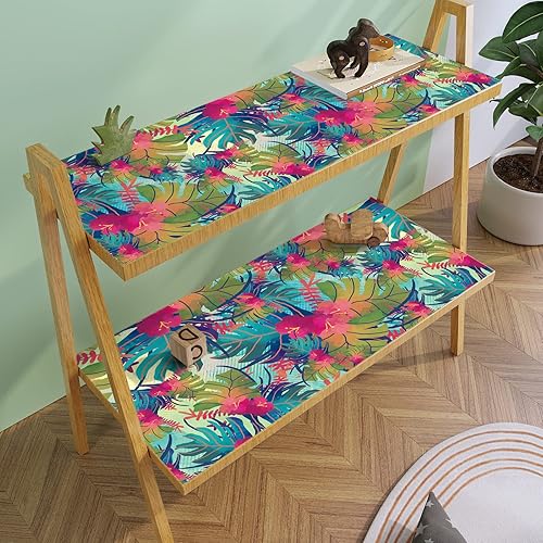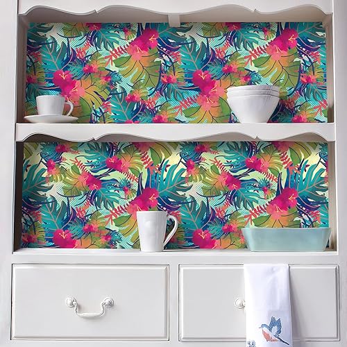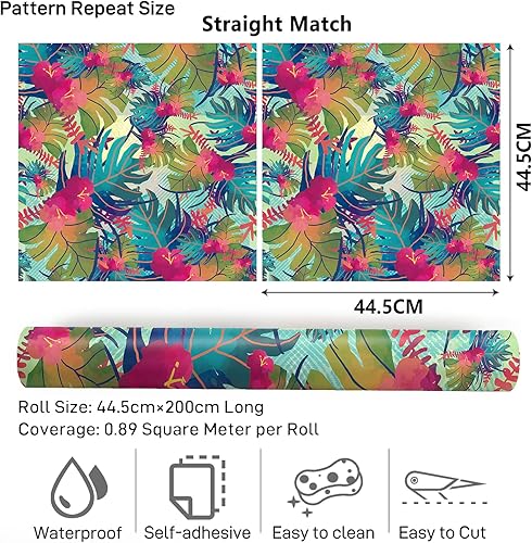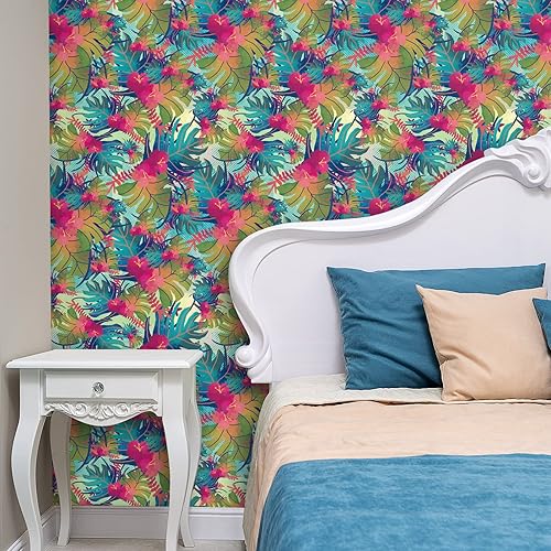 VaryPaper Papier Peint Fleuri Rose Papier Peint Feuilles Tropical Coloré 44.5cmx200cm Papier Adhesif pour Meuble Rouleau Adhesif Decoratif Stickers Meuble Enfant Papier Peint Chambre Fille Chambre