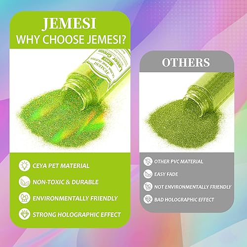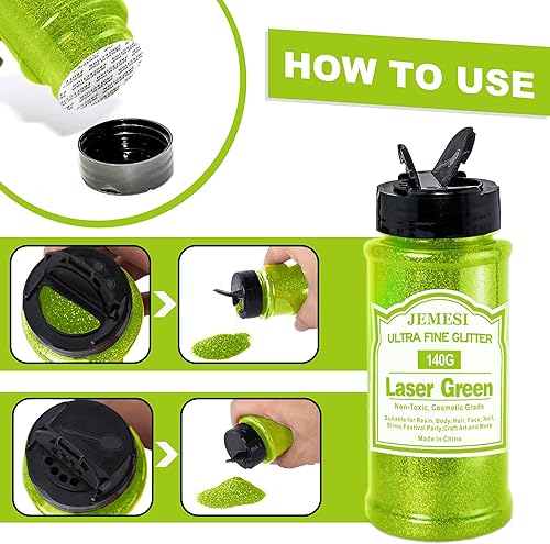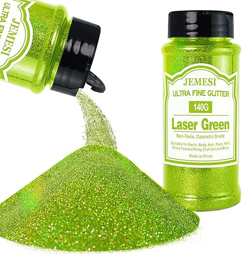 JEMESI Poudre à paillettes vertes, 140 g - 0,2 mm - Poudre pailletée ultra fine pour résine époxy, bricolage, peinture tumbler fabrication de bougies, paillettes cosmétiques, poudre à ongles, cheveux