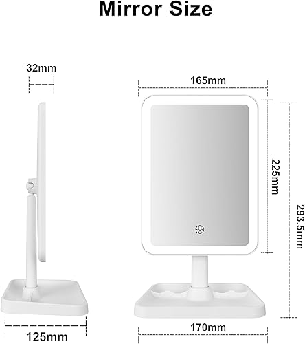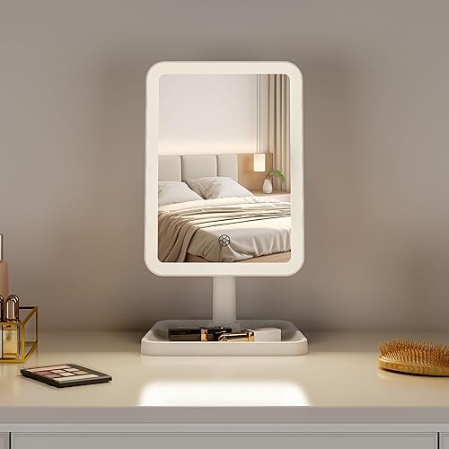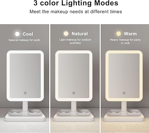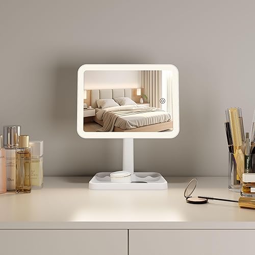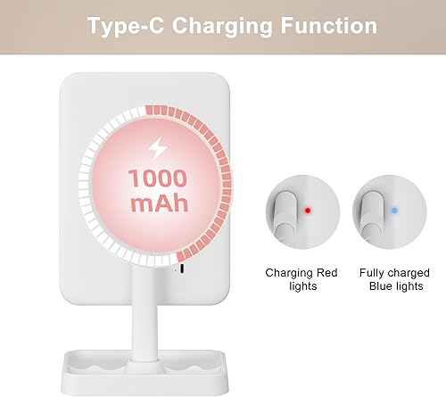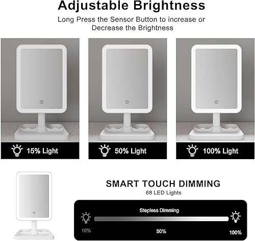 GASHIO Miroir cosmétique avec 68 LED – 3 modes d'éclairage (chaud, neutre, froid), capteur tactile, rotation à 360°, charge USB-C, batterie 1000 mAh, miroir de maquillage sans fil