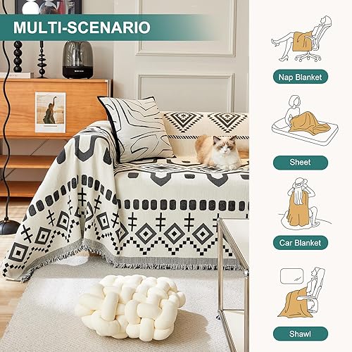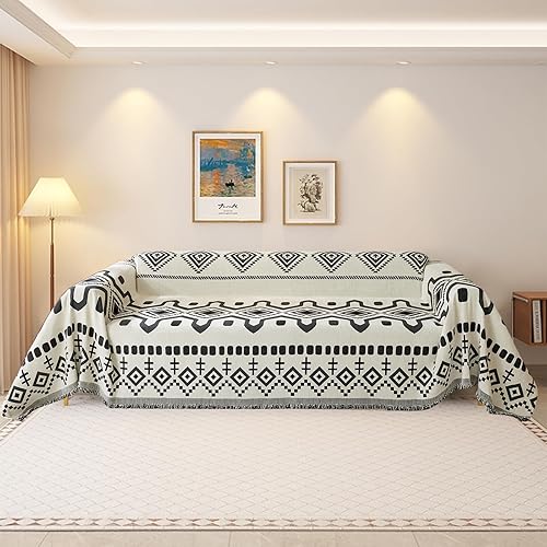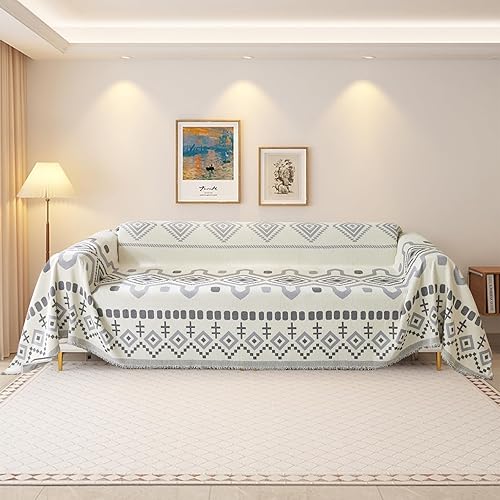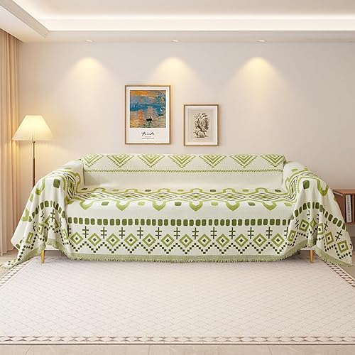 VanderHOME Housse de canapé Douce et Lavable en Machine Grand Plaid et Couvre-lit en Chenille, Protege Canape, Jete de canape avec Franges Délicates Housse Protection canapé 180 * 380cm-Vert