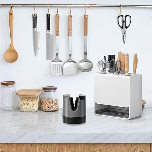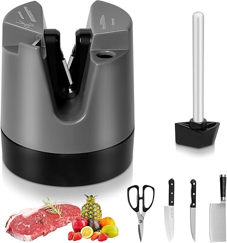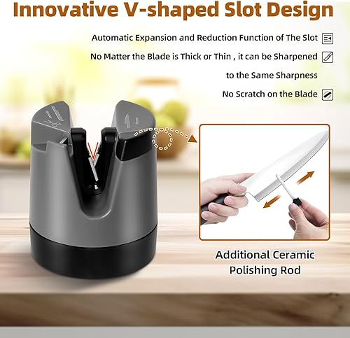 Aiguiseur de couteaux, Eguiseur de couteau avec ventouse, Aiguiseurs de couteaux à réglage automatique de l'angle pour les couteaux à lame droite, les couteaux dentelés et les ciseaux