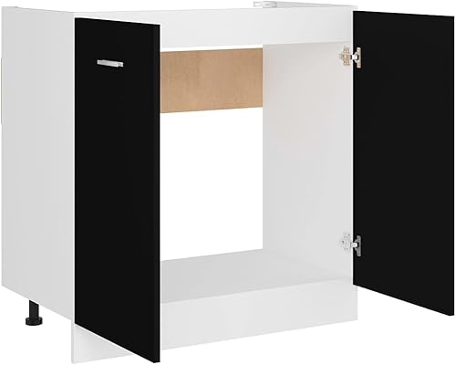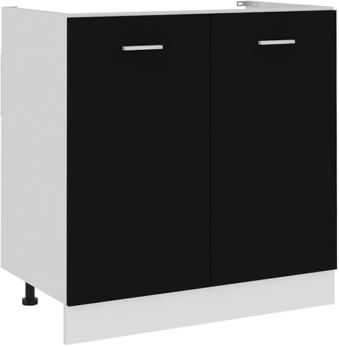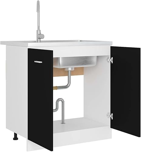 Wakects Meuble de Cuisine sous évier, Meuble sous évier avec 2 Portes, Meuble de Cuisine sous évier en Aggloméré, 80 W X 46 W X 81,5 H Cm, Noir