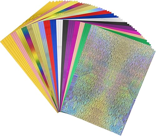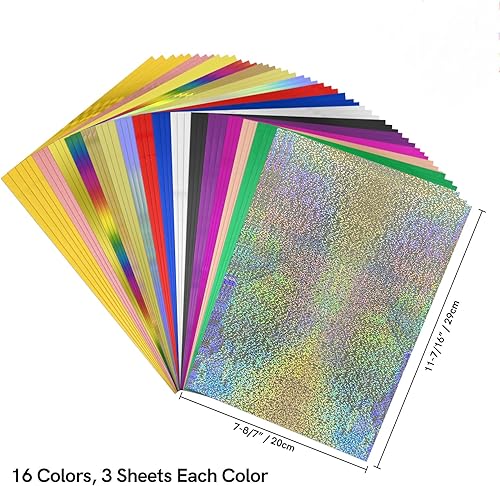 BAOFALI Lot de 100 feuilles de papier d'aluminium réactif pour imprimante laser et plastifieuse, pour scrapbooking et loisirs créatifs (16 couleurs, 6 feuilles par couleur) 20,1 x 29 cm
