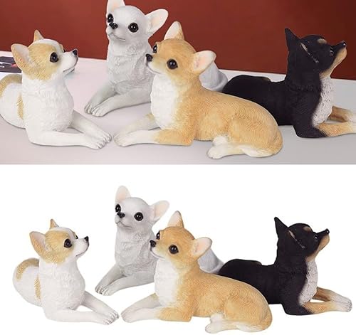 Figurine de chihuahua assis réaliste pour décoration de jardin ou de maison avec résistance au gel (Kaki)