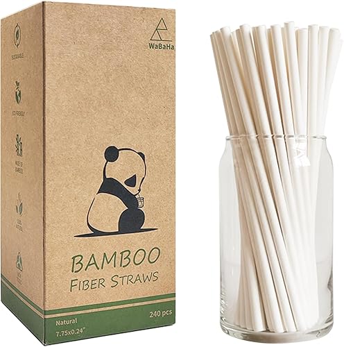 Lot de 240 pailles jetables biodégradables en fibre de bambou pour cocktail (6 x 197 mm)