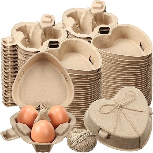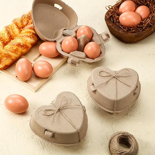 FoldTier Lot de 50 boîtes à œufs de Pâques en forme de cœur avec corde de jute réutilisables pour rangement dans le jardin, cadeau de Saint-Valentin pour les amateurs de poulet