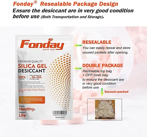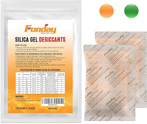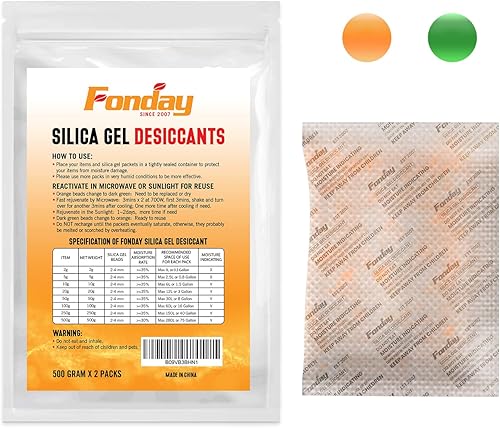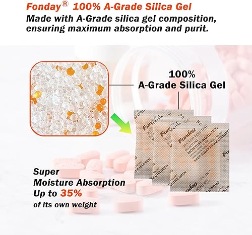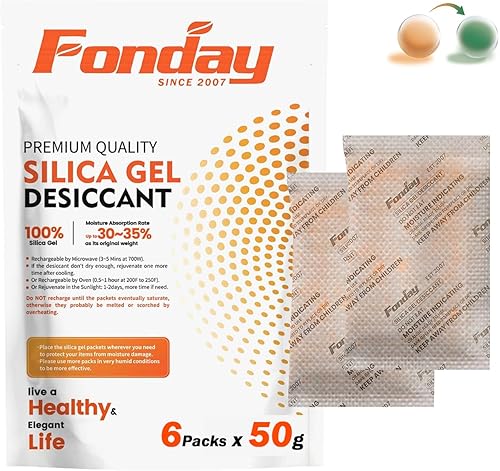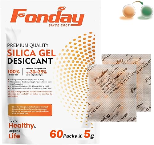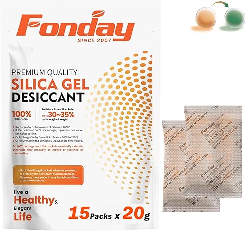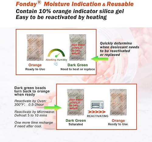 10Gram [30 Packets] Fonday Rechargeable Silica Gel Desiccant Packets Food Grade Fast Reactivate Desiccant Bags Moisture Indicating Orange to Green