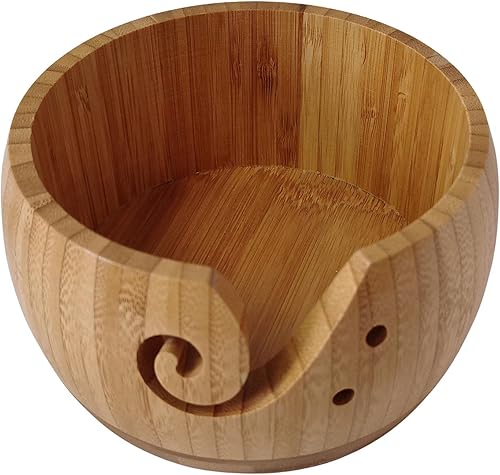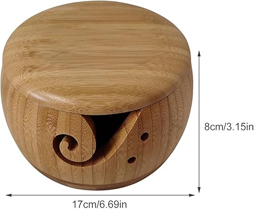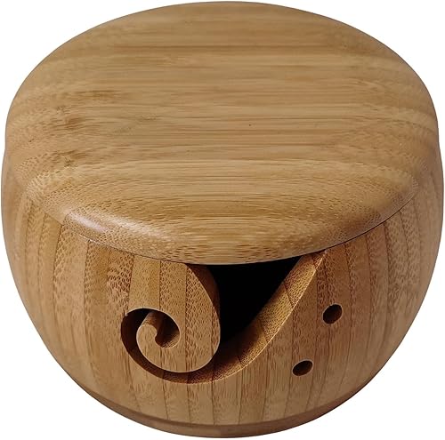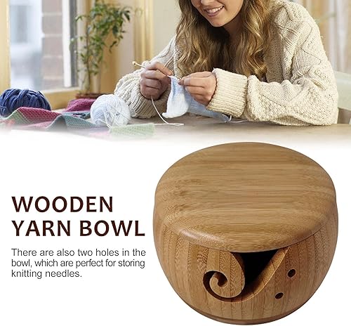Luckxing Bol à Fil Portable avec Couvercle,Porte-Panier Rangement en Fil Laine en Bois - Artisanat Rond pour Tricoter au Crochet, Cadeau fête des mères