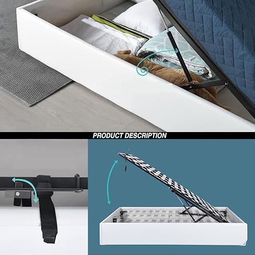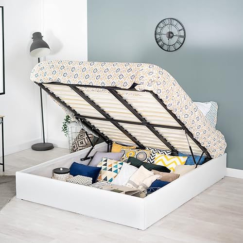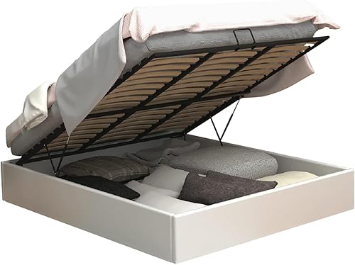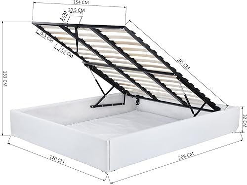 MEUBLE COSY Lit Coffre 160x200 cm pour Adulte en Similicuir avec Sommier à Lattes en Bois