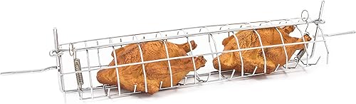 Broche Anglaise pour Barbecue ou Rôtissoire, Tournebroche de Cheminée. Acier chromé (Longueur 78 cm)