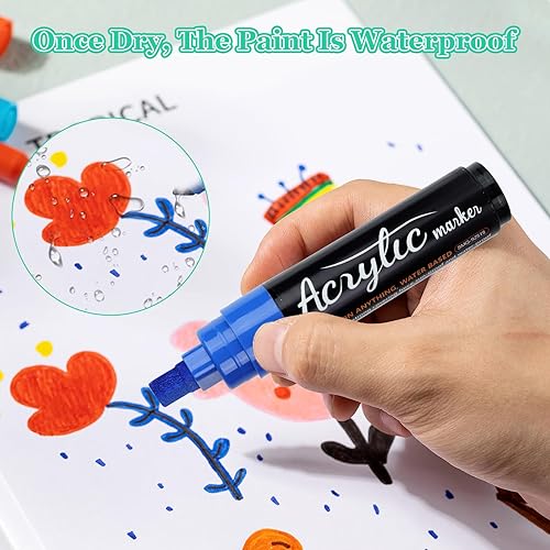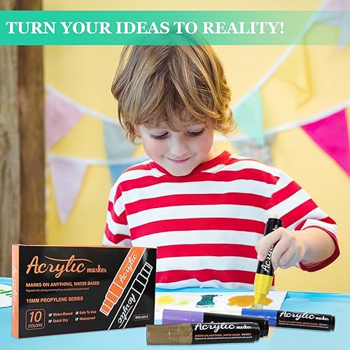 10 Couleurs Marqueur Acrylique Large, 15mm Feutre Peinture Acrylique Large, Marqueurs Jumbo Couleur, 3 en 1 Feutres Acrylique Permanents pour Peinture Sur Roche, Pierre, Céramique, Bois et Toile