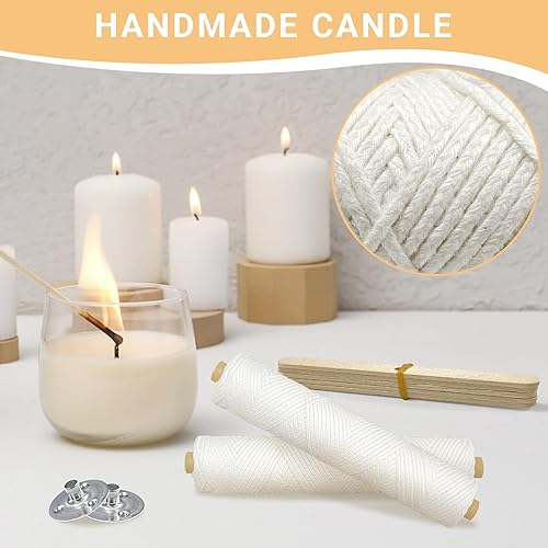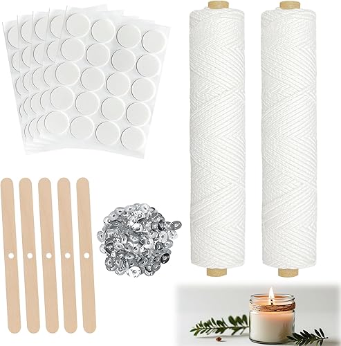 Bellanova 122m Mèche de Bougie, Meche Bougie avec 100 Supports Mèche Ensemble de Mèches Tissées sans Fumée pour Bougies Parfumées, Fabrication de Bougies, Lampes à Huile, Aromathérapie