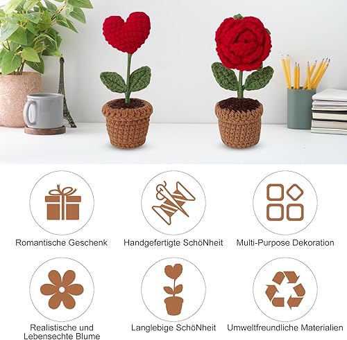Fleurs artificielles au crochet roses infinies - Cadeaux pour femme, maman, meilleure amie, cadeaux de luxe pour femme