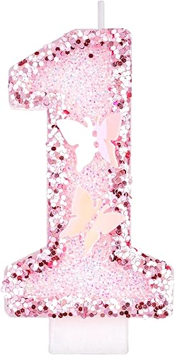 Alaoo Numéro 1Bougies d'anniversaire, Bougies d'anniversaire Numéro,3D Rose Bougie Chiffre 1,Bougies Gâteau Topper Decoration,Papillon Decoration Gateau Anniversaire,pour Les Enfants, Adultes