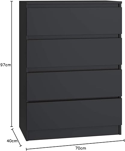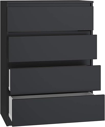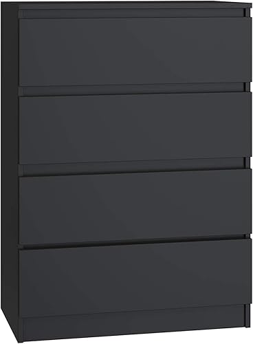 CDF Commode Malwa M4 | Couleur : Noir | Armoire pour Documents, Petits Objets | Idéal pour Salon, Chambre à Coucher, Chambre d'enfant, et Bureau | 4 tiroirs spacieux...