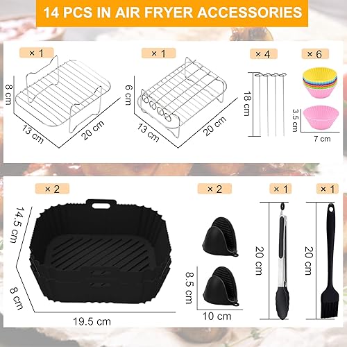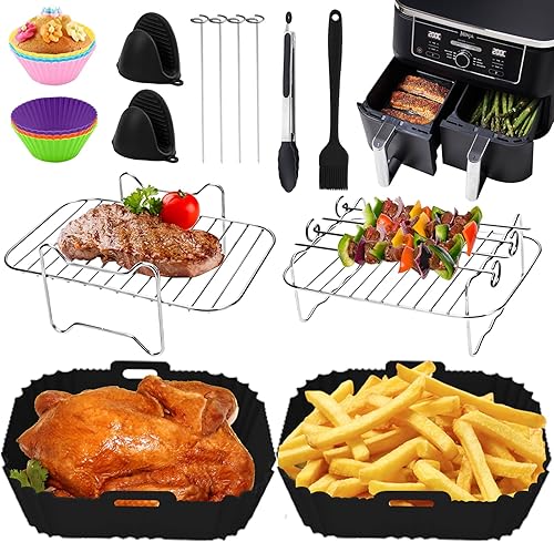 ARNTY Accessoires Air Fryer Dual 9,5L, 14 PCS Double Zone Accessoire Convient pour Ninja Foodi AF400EU, AF300EU, Innsky, Princess Accessoires Pour Friteuses à Air Double 7,6 L-9,5 L