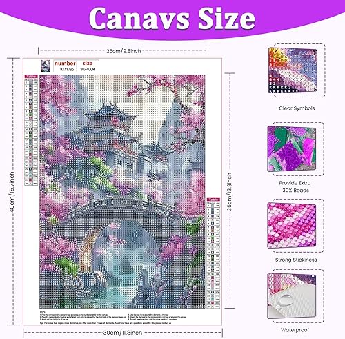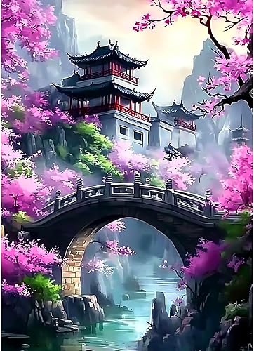 CEOVR Peinture Diamant Adulte Paysage 5D Diamond Painting Kit Complet, 30x40 cm Architecture Chinoise Ancienne Painting Diamant Kit Adulte