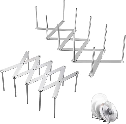 SALADOCY 2 Pièces Support pour Couvercles en Acier Inoxydable, Ustensile de Cuisine Organisateur, Étagère de Rangement Télescopique Multifonction Support de Rangement pour Placard de Cuisine