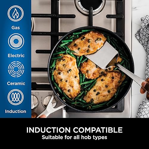 Ninja ZEROSTICK Premium Cookware Sauteuse de 26 cm avec couvercle en verre, longue durée, antiadhésive, aluminium anodisé dur, compatible induction, passe au four jusqu'à 260 °C, gris C30126UK