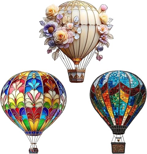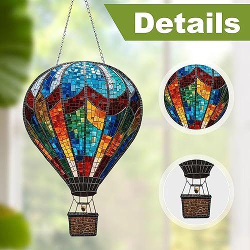 Eyccier Décorations de montgolfières, 2D Art Mural Festif en montgolfière, Suncatchers Exquis pour Le Jardin en Verre de fenêtre Porceau arrière-Cour extérieur, style2.