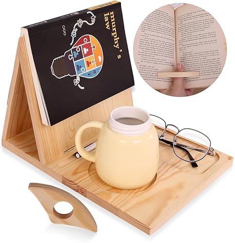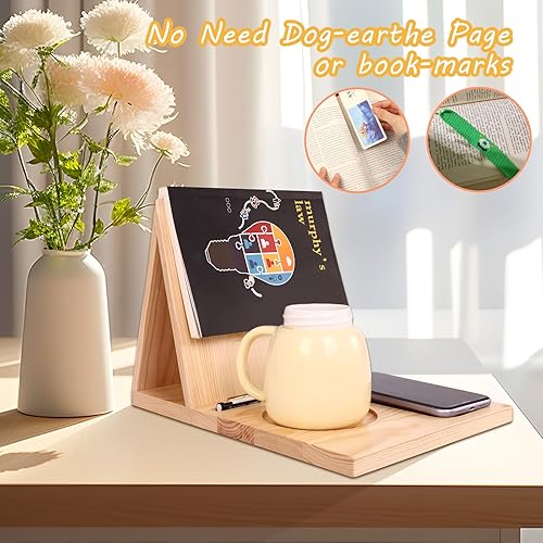 Support de livre avec marque-page pour le pouce, support de page de livre, support pour la lecture, valet d'angle de livre unique avec tasse, lunettes et porte-stylo, cadeaux pour les amateurs de