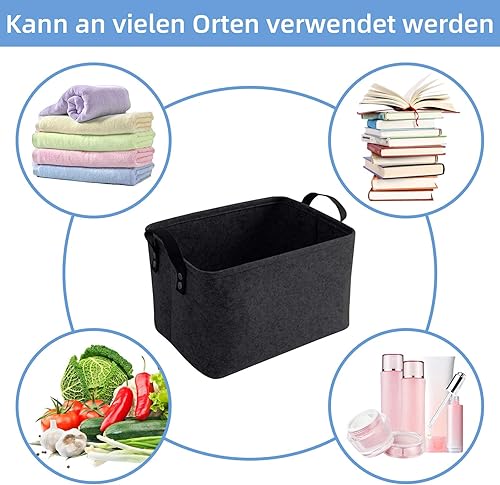 LITLANDSTAR Panier de rangement pliable en feutre pour étagère, linge, armoire, jouets ou papier toilette, 33 x 20 x 23 cm, noir