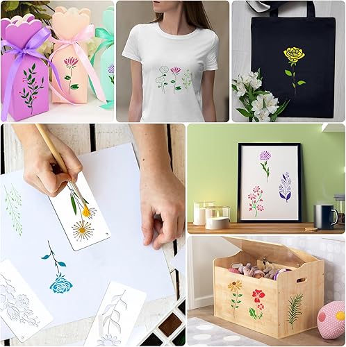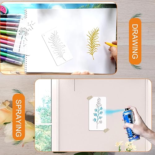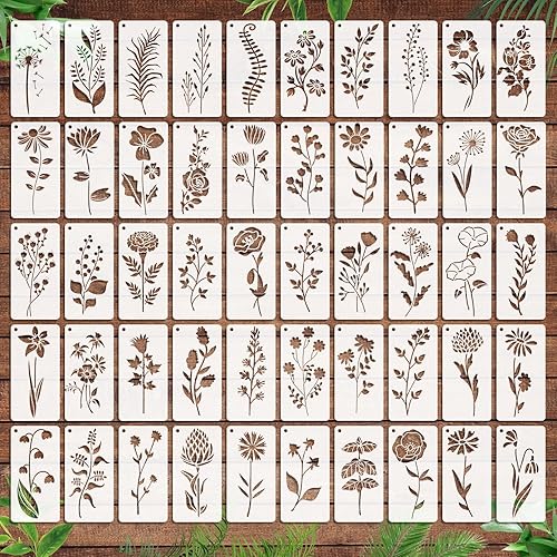 OOTSR 50 Pièces Pochoirs de Feuilles de Peinture Meuble, Pochoirs de Peinture de Fleurs Feuilles Réutilisables, Modèle de Pochoir pour DIY Bois Meubles Mur Maison Décor