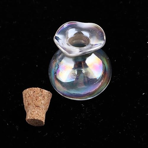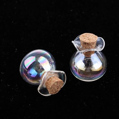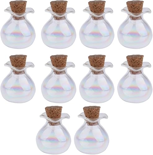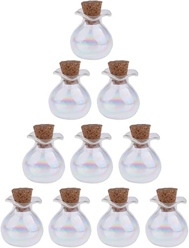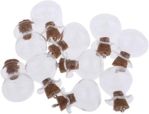 F Fityle 10 Pièces Petites Bouteilles en Verre avec Bouchon en Liège Pendentif Flacon Mignon Mini Pots, Fiche en Bois colorée avec épingle