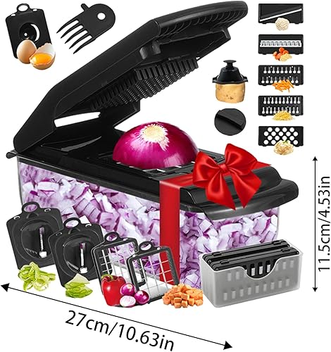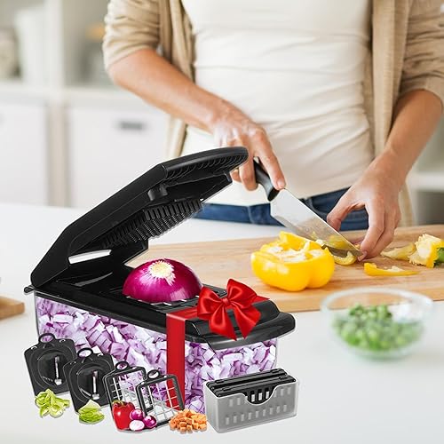 Hachoir Alimentaire - Découpe-Légumes Multifonction pour Cuisine avec Récipient,Accessoires de Cuisine Ustensiles Manuel, Râpe Fromage pour Salade Carottes Fruits Légumes, Essentiels Maison