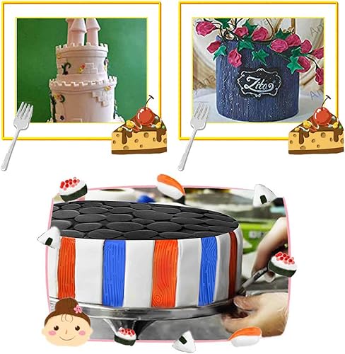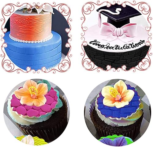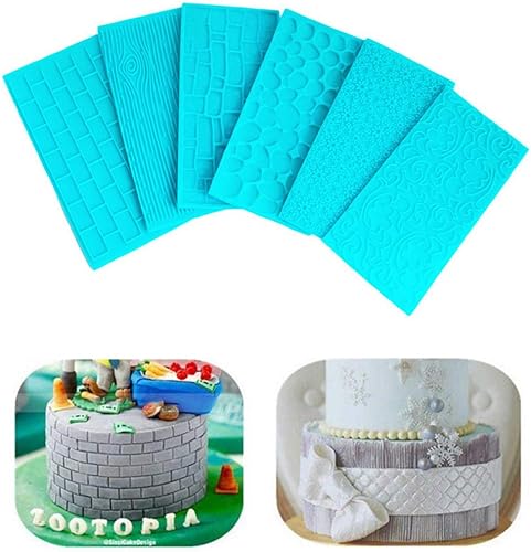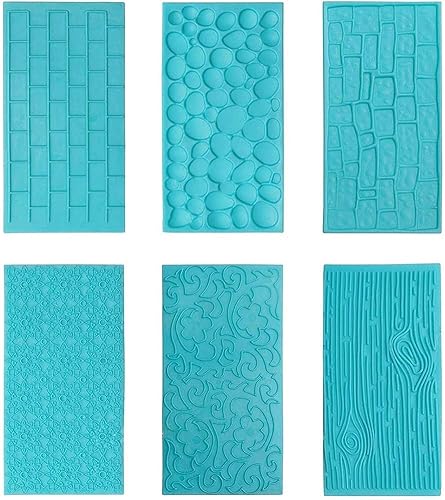 Gurxi Moules Texturés en Plastique pour Glaçage Motifs Ecorce d’Arbre Briques Bois Pierre Fleurs et Pavé pour Chocolat et Fondant - Set Parfait pour Les Bordures des Gâteaux et Cupcakes 6PCS