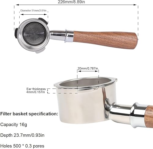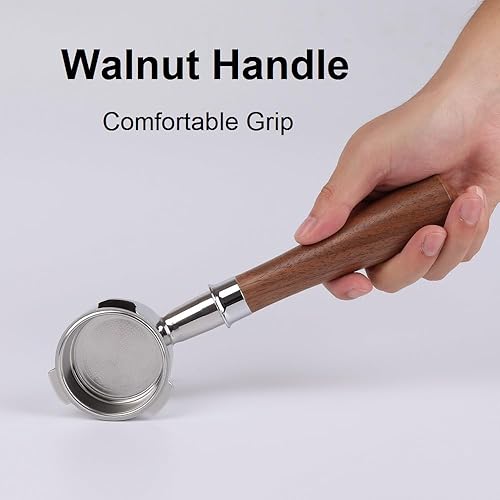 CAPFEI Porte-filtre sans fond 51 mm pour Kl SteelPresso Slim/Casabrews CM5418 avec 3 oreilles de 4 mm d'épaisseur - Boucle en T - Poignée en noyer