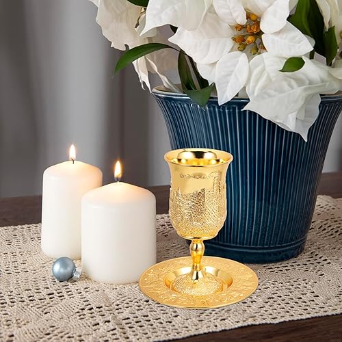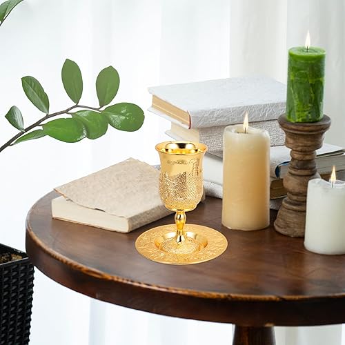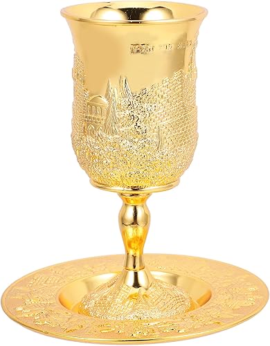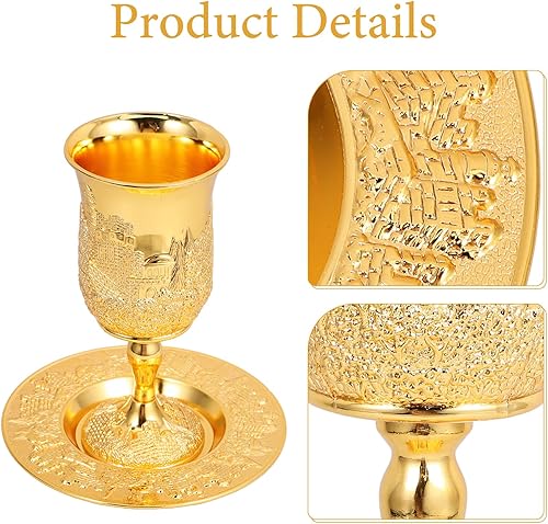 Amosfun Tasse De Kiddouch Et Plateau Plaqué Or Gobelet Coupe De Vin Pour Shabbat Et Havdalah Pâque Seder Bar Bat Mitzvah De Mariage