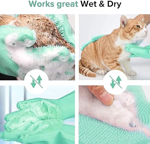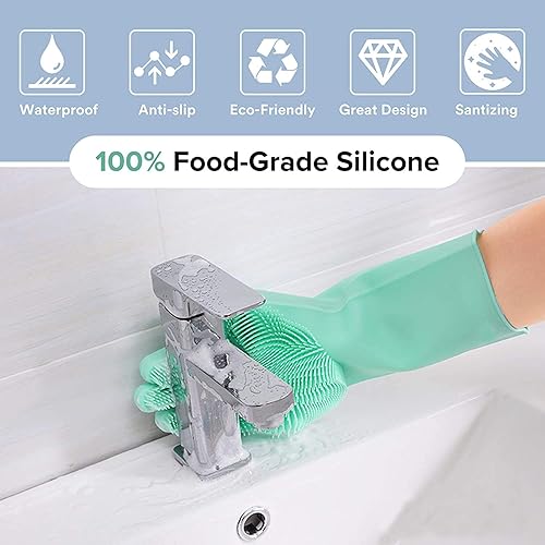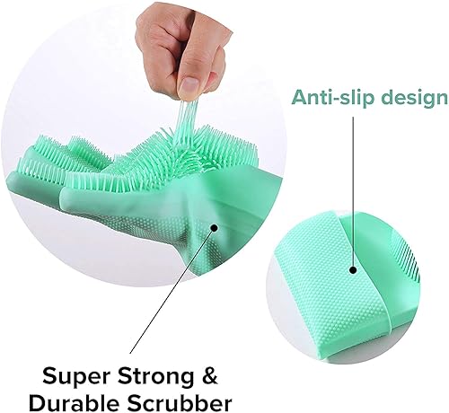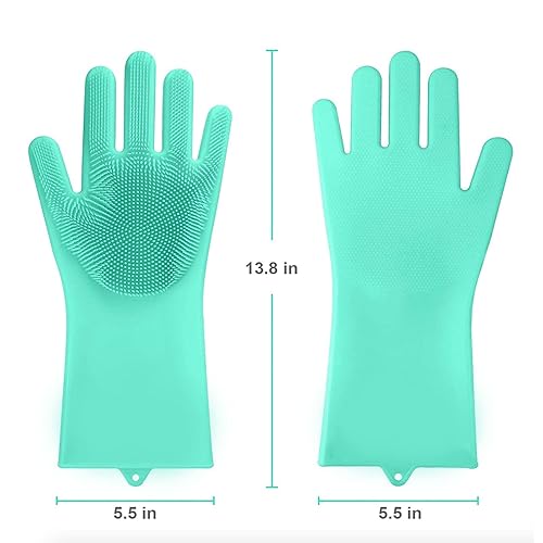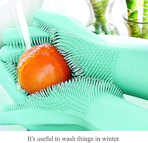 Gants magiques en silicone réutilisables, résistants à la chaleur, idéal pour la maison, le lave-vaisselle, le lavage de la voiture, les soins des poils d'animaux et le massage, une paire vert menthe