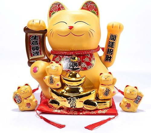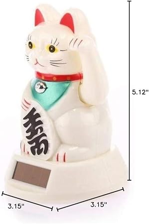 lachineuse - Maneki Neko Solaire avec Bras Qui Bouge - Statue Chat Japonais Porte-Bonheur - Statuette 12,5 cm avec Bras Mobile - Objet Kawaii Déco - Idée Cadeau Japon Asie - Chance, Bonheur, Fortune