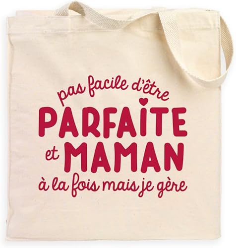 We Are Family, Totebag Humoristique, Pas Facile d'Être Parfaite Et Maman À La Fois Mais Je Gère Naturel, Cadeau Original, Un cadeau parfait pour Humour en 100% Coton imprimé avec amour en France