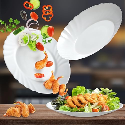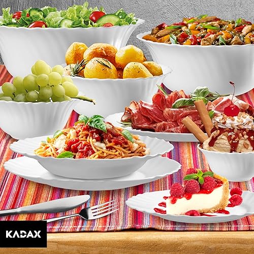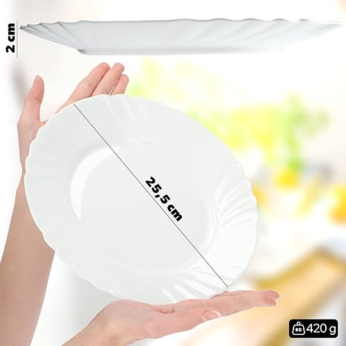 KADAX Assiettes en verre durci, lot de 3 sections, assiette coupée plate, esCutore minimaliste, assiette à gâteau, assiettes petit-déjeuner ronde, assiettes à salade (25,5 cm, blanc)