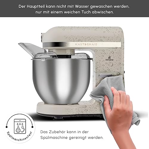 Karaca Mastermaid Chef Pro Cuisine à double bras 1500W Crème douce, Crème brillante, 1500W, 5 L Mixeur, Processeur alimentaire, Réglage de la vitesse, Crochet de pétrissage, Fouetter