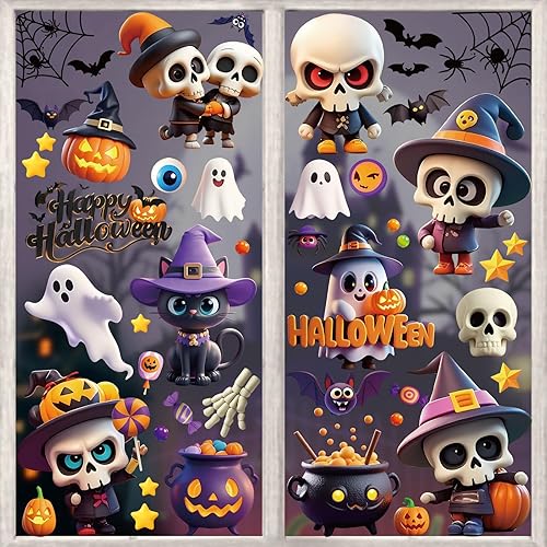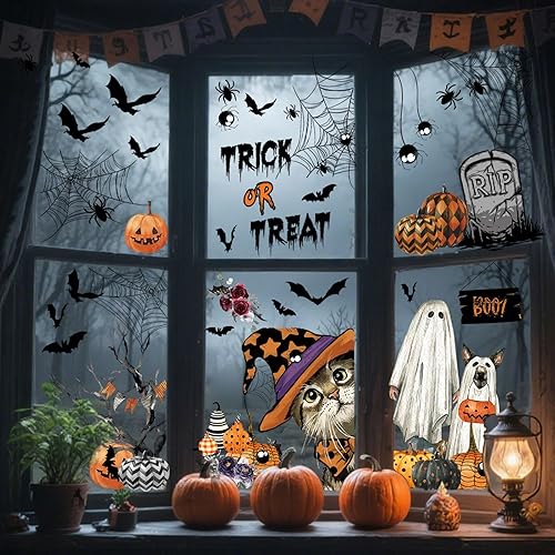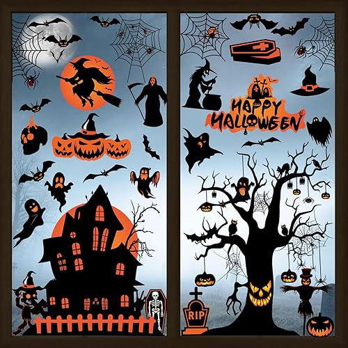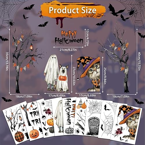 AhfuLife 191Pcs Halloween Fenêtre Autocollants, 10 Feuilles Réutilisables Stickers Fenêtre de Halloween Amovible avec 10 Feuilles Halloween Autocollant Tatouage pour Halloween Décor, Nuit d'Halloween