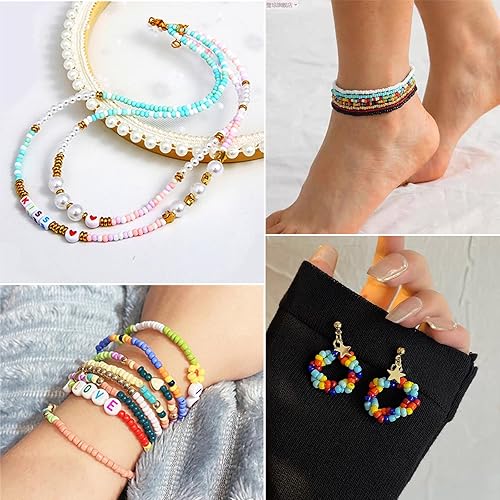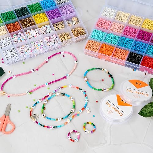 Monemey 1850Pcs Perles pour Bracelet Bijoux Kit Bracelet Perles de Plastique Rondes pour DIY Colliers Bracelets Boucles Fabrication de Bijoux