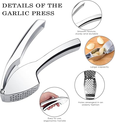 Jidyllic Presse ail Premium,Ecrase ail Robuste et Durable Découpe Ecrase Ail Hachoir à Gingembre Garlic Press Rocker Crusher pour Broyer et Éplucher