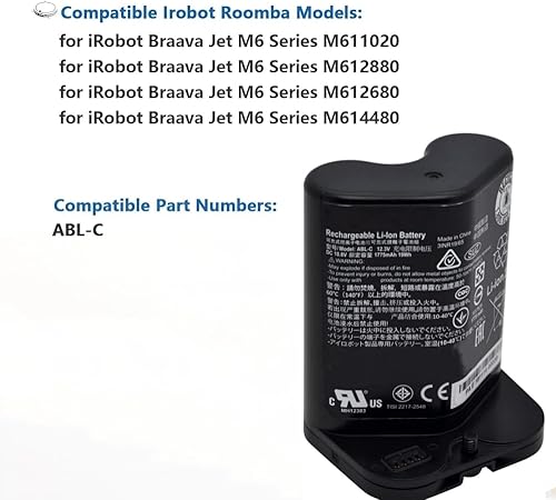 ASKC ABL-C Replacement Batterie pour iRobot Braava Jet M6 Series M611020 M612880 M612680 M614480 6100 Ultimate Robot Mop 10.8V 19Wh 1775mAh
