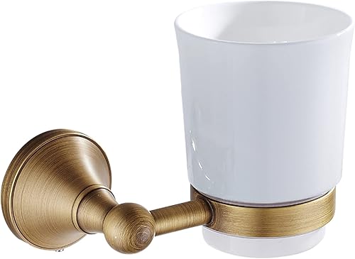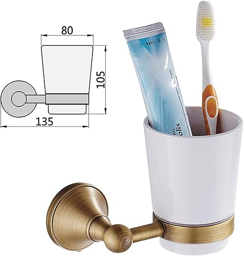 QTDZ Porte-Brosse À Dents Brossé en Laiton Antique Salle De Bains Rétro Brosse À Dents Becher Porte-Mur Suspendu Céramique Simple Tasse De Salle De Bain Accessoires De Salle De Bain