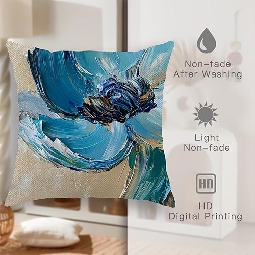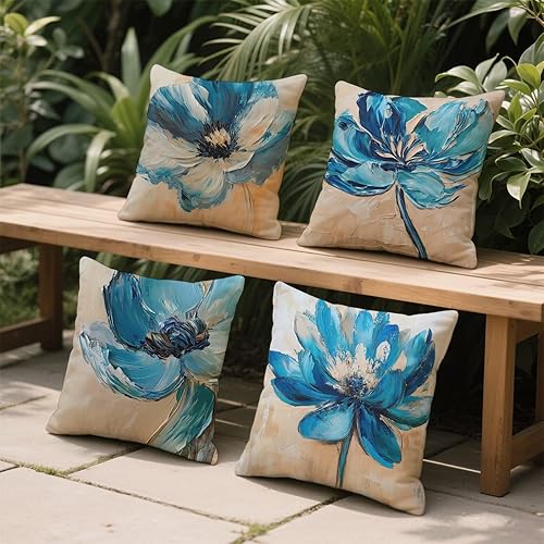 Housse Coussin Exterieur Impermeable 60X60cm Lot De 4 Bleu Coussin Canape Moderne DéCoratives en Coton Lin Taie Oreiller de Canapé Housse de Coussincarré pour Patio Jardin Salon Chambre DéCoration J-2