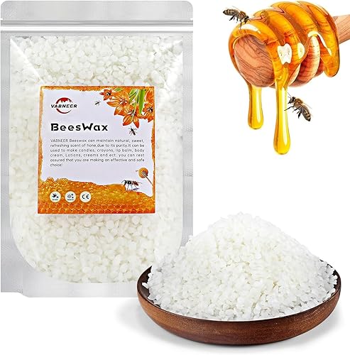 VABNEER Cire D'abeille Blanche, Boulettes de Cire D'abeille Naturelle, Les Abeilles Pastilles de Cire, Idéaux Pour Les Applications de Fabrication de Bougies (200g)