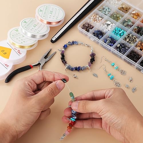 Kyrio 1660pcs Kit de fabrication de bijoux, Kit de perles de cristal 28 couleurs avec fil métallique pour bijoux à fermoir mousqueton, et autres fournitures pour la fabrication de bijoux