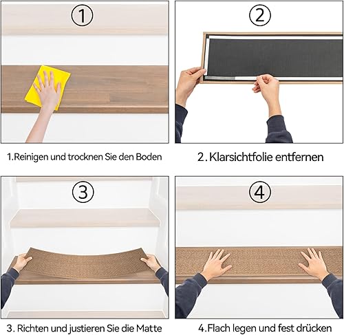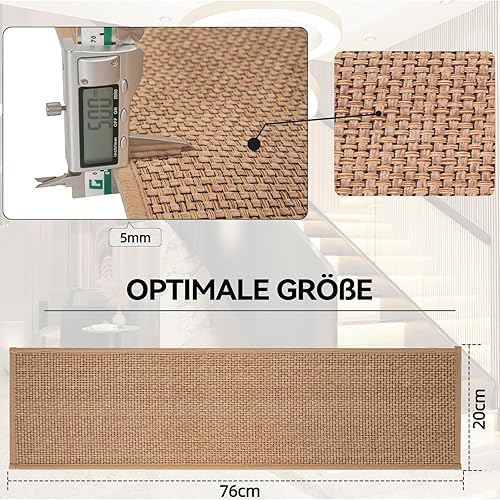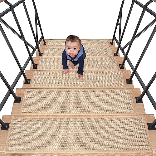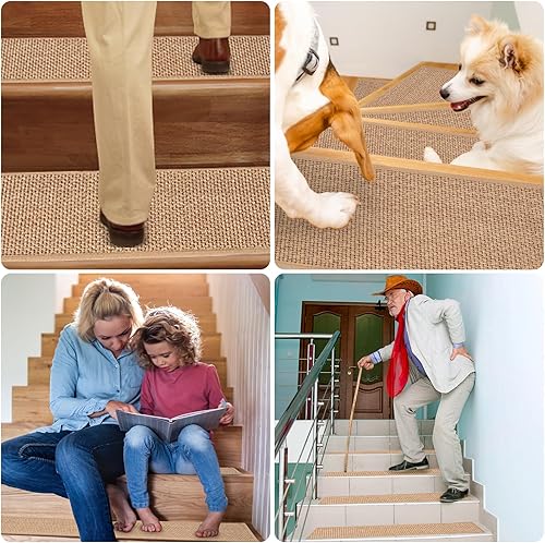 IPEB Tapis d'escalier en lin - 20 x 76 cm - Antidérapant - Sans collage - Autocollant - Pour enfants et personnes âgées et animaux domestiques (15, beige)