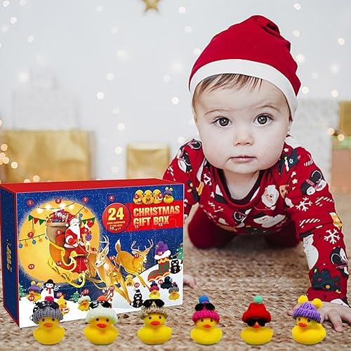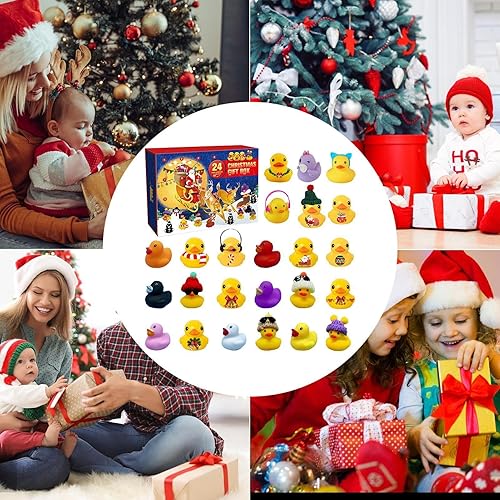 Calendrier de l'Avent Canards en caoutchouc 2024, 24 canards de bain mignons améliorés pour bébé, Calendrier de compte à rebours 2024 avec 24 canards en caoutchouc différents pour garçons filles
